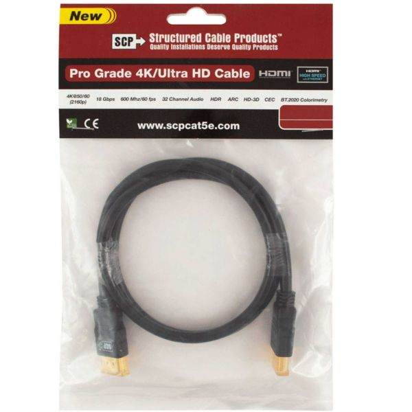 4K@60 4:4:4, 2160p, 18 Gbps, HDR, BT.2020, 32-kanavainen ääni, ARC, CEC, 3D ja ovat taaksepäin yhteensopivia kaikkien nykyisten HDMI-määrityksiä koskevien ominaisuuksien kanssa. HUOMAUTUS: SCP esittelee arviolta 4. vuosineljänneksellä 2016 alan ENSIMMÄISET "AKTIIVIT" HDMI-kaapelit, jotka täyttävät tämän TODELLA 4K Ultra HD -standardin 4K@60 4:4:4 (2160p), Full 18Gbps. Näissä kaapeleissa on myös Snug-Tite™ Grip turvallisia liitäntöjä varten. Tällä hetkellä kaikki "aktiiviset" (yksisuuntaiset) HDMI-kaapelimme tukevat HDMI-standardeja 4Kx2K – 4K@30 4:4:4 / 4K@60 4:2:0 (1080p), 10,2 Gbps. Tämä koskee nykyisiä osanumeroitamme. 944E-25, 944E-30, 944E-35 ja 944E-50, jotka ovat pituuksille 25 jalkaa/7,6 m – 50 jalkaa/15,25 m. Kaikki SCP 944E Custom Install -sarjan kaapelit ovat taaksepäin yhteensopivia kaikkien aiempien HDMI-versioiden kanssa. SCP 4K Ultra HD mukautetun asennussarjan "Passive" -kaapeleita on saatavana seuraavina pituuksina: 3ft/0.9m, 6ft.1.8m, 10ft/3m, 15ft/4.5m ja 20ft/6. Saatavilla oleva pakkaus: Polylaukku, jossa on pahvipäällinen/ripustin. Poly-pussit on pakattu 10 kappaleen Master Pack -pakkauksiin passiivikaapelin pituuksilla.