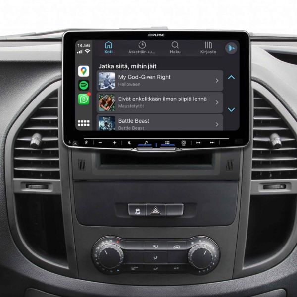 Apple CarPlay sekä Android Auto tuovat rutkasti mukavuutta matkantekoon. Pääset käyttämään puhelimessa olevia kymmeniä eri sovelluksia suoraan Alpinen kosketusnäytöltä ja jos olet tottunut käyttämään esimerkiksi Spotifyta, Suplaa tai BookBeatin palveluja puhelimestasi, näitä kaikkia hallitset jatkossa Alpinen suurelta kosketusnäytöltä.