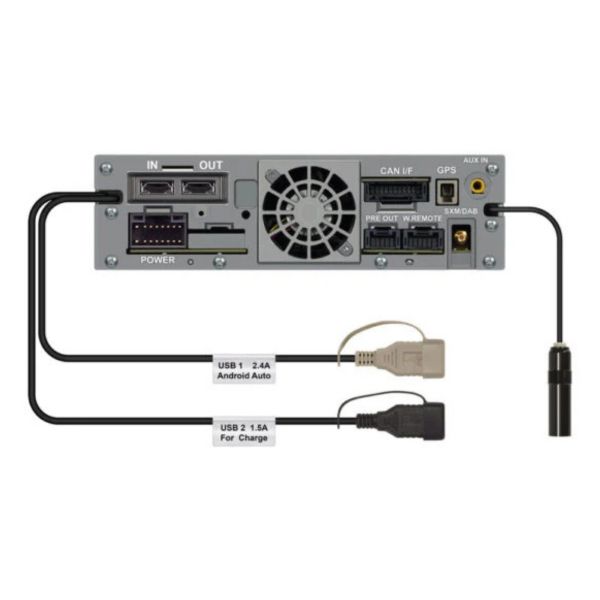 iLX-F115D-W447:n mukana tulee USB-adapteri, jolla saat auton tehdasasenteisen USB-liittimen toimimaan Alpinen kanssa.