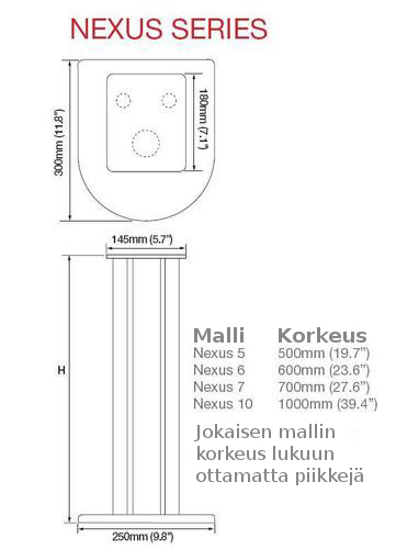 - Kokonaiskorkeus: Nexus 10i-mallilla 1000mm (ilman geelityynyjä)