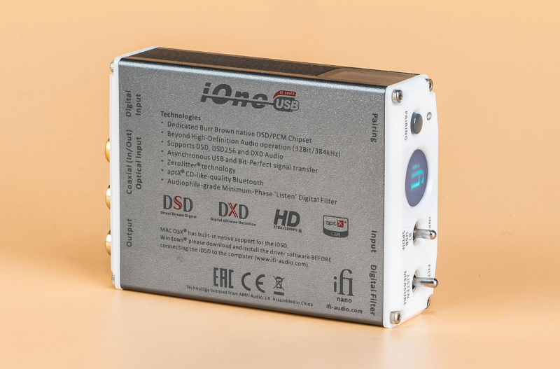 - DXD: Bit-Perfect Processing, fixed filter - Sisääntulot: USB 3.0 compatible with USB 2.0 Bluetooth (TM) with aptX & AAC Codec SPDIF RCA & Optical Combo