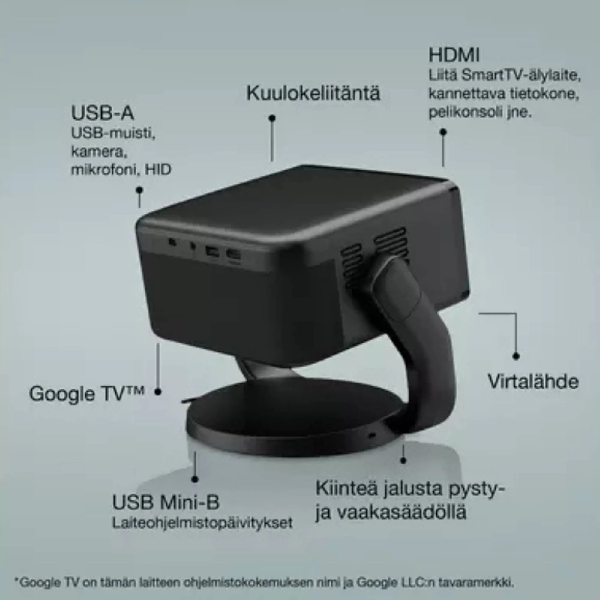 Kaikki mitä suoratoistat; yhdellä näytöllä. Yli 400 000* elokuvaa ja TV-sarjan jaksoa yhdessä paikassa. Google TV tuo suosikkisisältösi sovelluksistasi ja tilauksistasi ja järjestää ne juuri sinua varten. Pyydä Google Assistantia etsimään elokuvia, suoratoistamaan sovelluksia, soittamaan musiikkia ja ohjaamaan projektoria – tarvitset tähän kaikkeen vain oman äänesi*. Suoratoista elokuvia, ohjelmia, valokuvia ja paljon muuta helposti puhelimestasi tai tabletistasi suoraan projektoriisi Google Castin* avulla.
