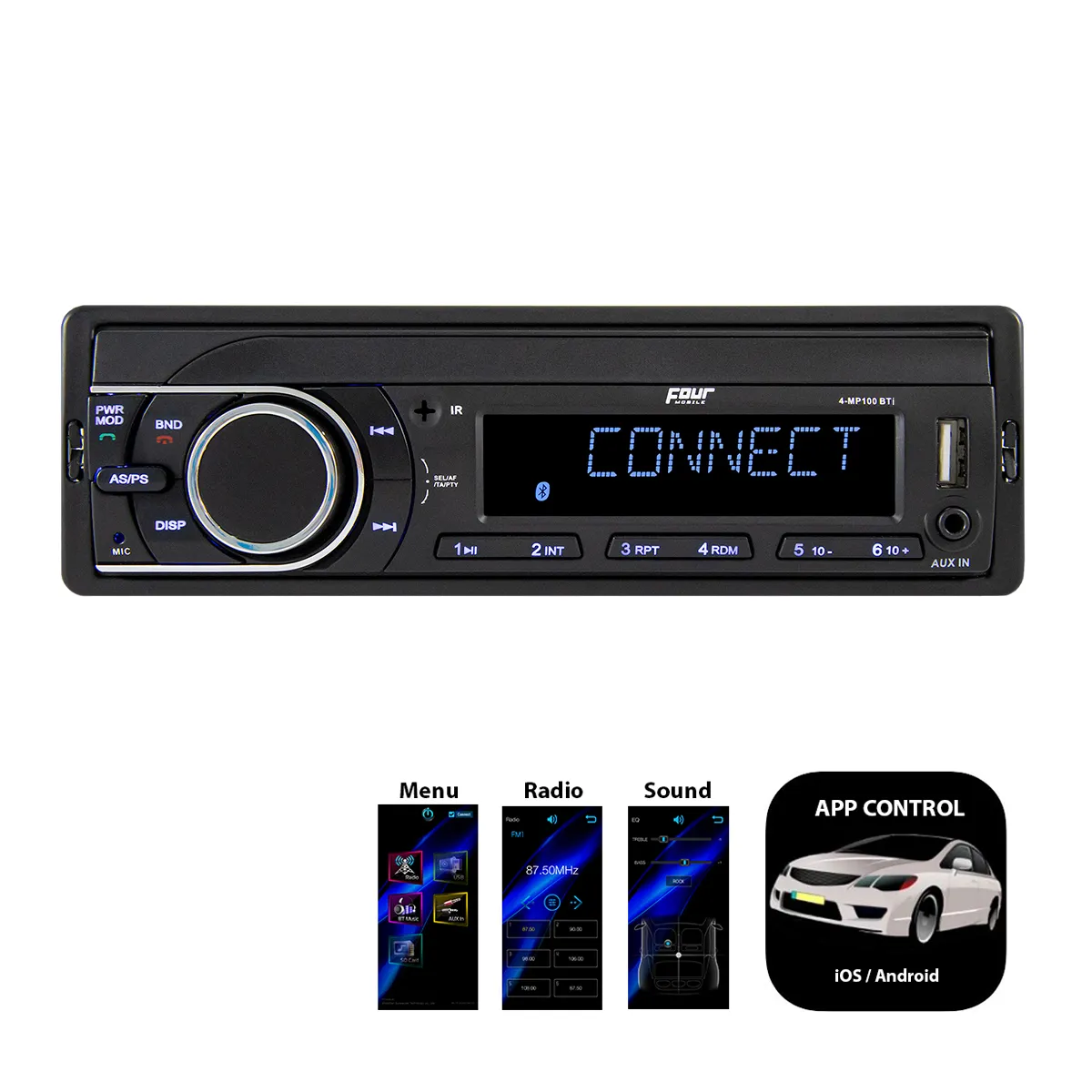 4Mobile 4-MP100BTi on lyhytrunkoinen mediasoitin. Lyhyen rungon etuna on helppo asennettavuus ahtaisiinkin asennuspaikkoihin. Soittimen rungossa on suoraan paikat ISO-liittimille. Tähän soittimeen ei tarvitse metsästää uutta mallikohtaista johtosarjaa auton vaihdon yhteydessä. Ratkaisu helpottaa myös entisestään asennusta ahtaisiin asennuspaikkoihin.
