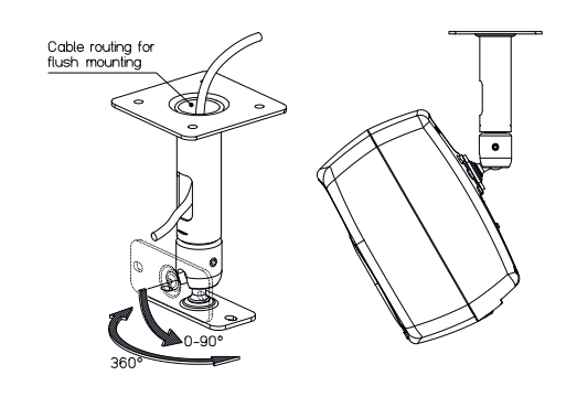 • Kaiutin kääntyy telineessä 360° ja maksimissaan 90° kulmaan riippuen kaiuttimesta ja asennuksesta