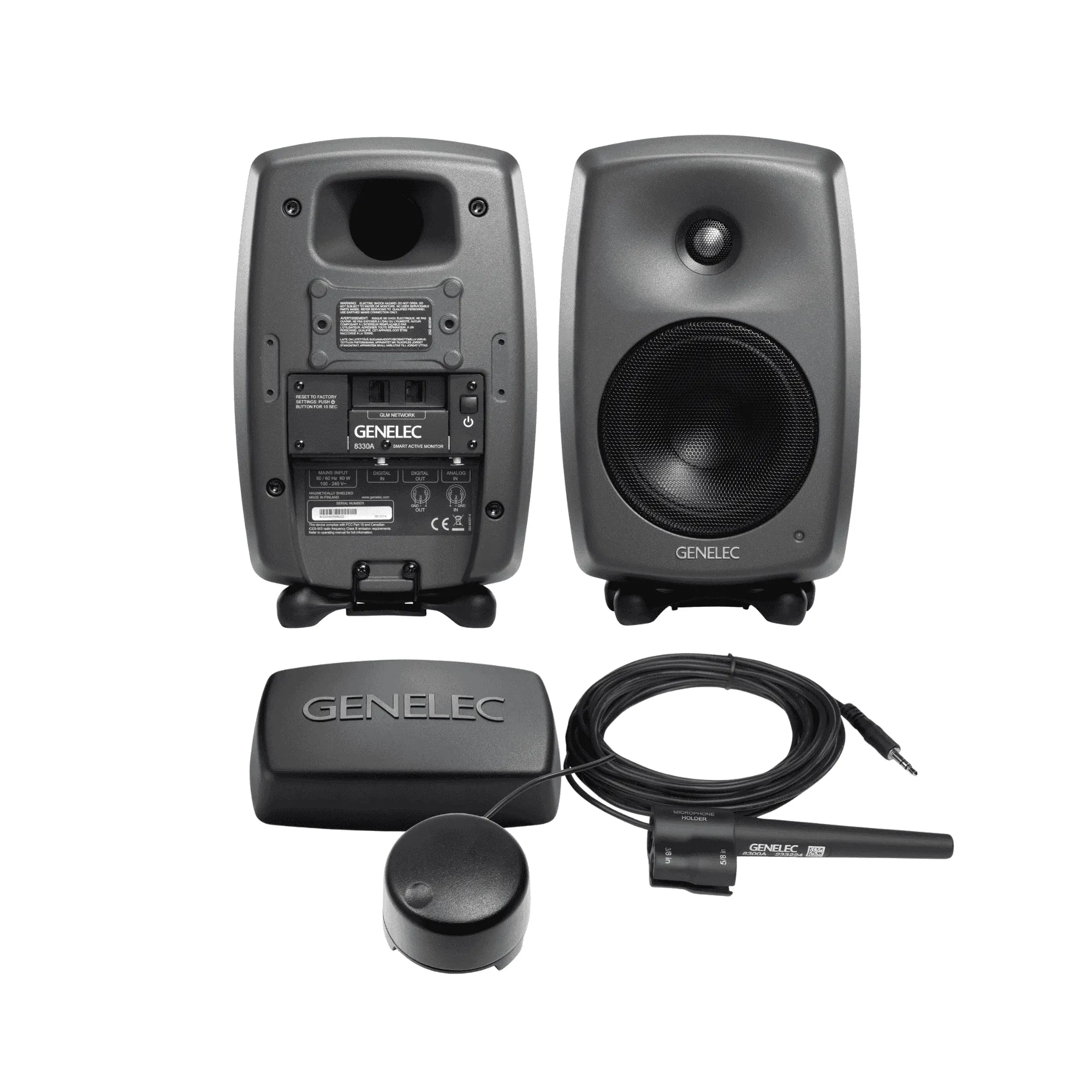 Genelec 8330A bundle pack tarjoaa ammattimaisen äänentoiston kompaktissa muodossa. Tämä paketti sisältää kaksi Genelec 8330A SAM -aktiivikaiutinta, GLM 5.0 -käyttöpakkauksen ja 9310B langallisen kaukosäätimen.