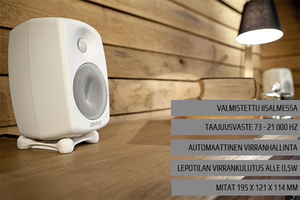 Genelec G One on suunniteltu ensisijaisesti musiikin kuunteluun kotona. Se on monipuolinen ja kompakti kaksitiekaiutin, joka toimii hyvin myös kotiteatterissa. Muotoilu on tuttua Genelecin ja Harri Koskisen saumatonta yhteistyötä, lopputuloksena korkeatasoinen kaiutin, joka sopii suomalaiseen sisustustyyliin.