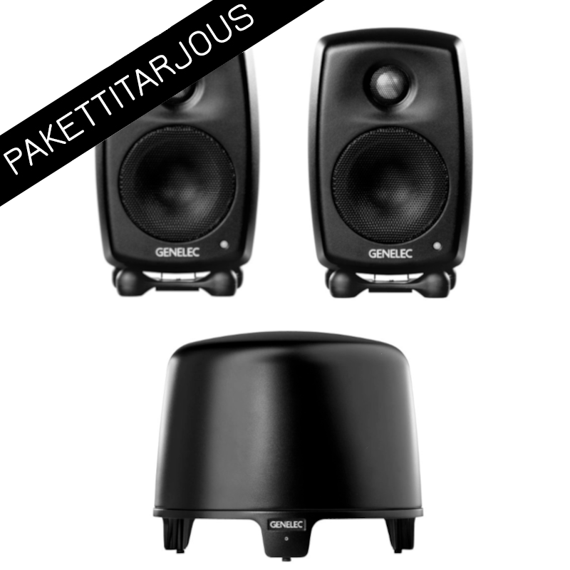 Genelec stereopakettiin kuuluu kaksi Genelec G One B aktiivikaiutinta ja Genelec F One B aktiivisubwoofer. Televisio, striimeri ja muut äänilähteet voidaan helposti kytkeä subwooferin digitaalisiin optiseen ja koaksiaaliseen sekä analogisiin rca ja 3.5mm:n sisääntuloihin.