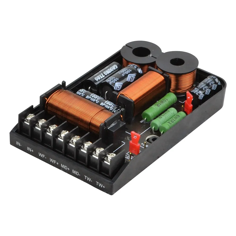 - Variable 12 dB crossover with high quality air-coils, MOX-resistors and MET-capacitors