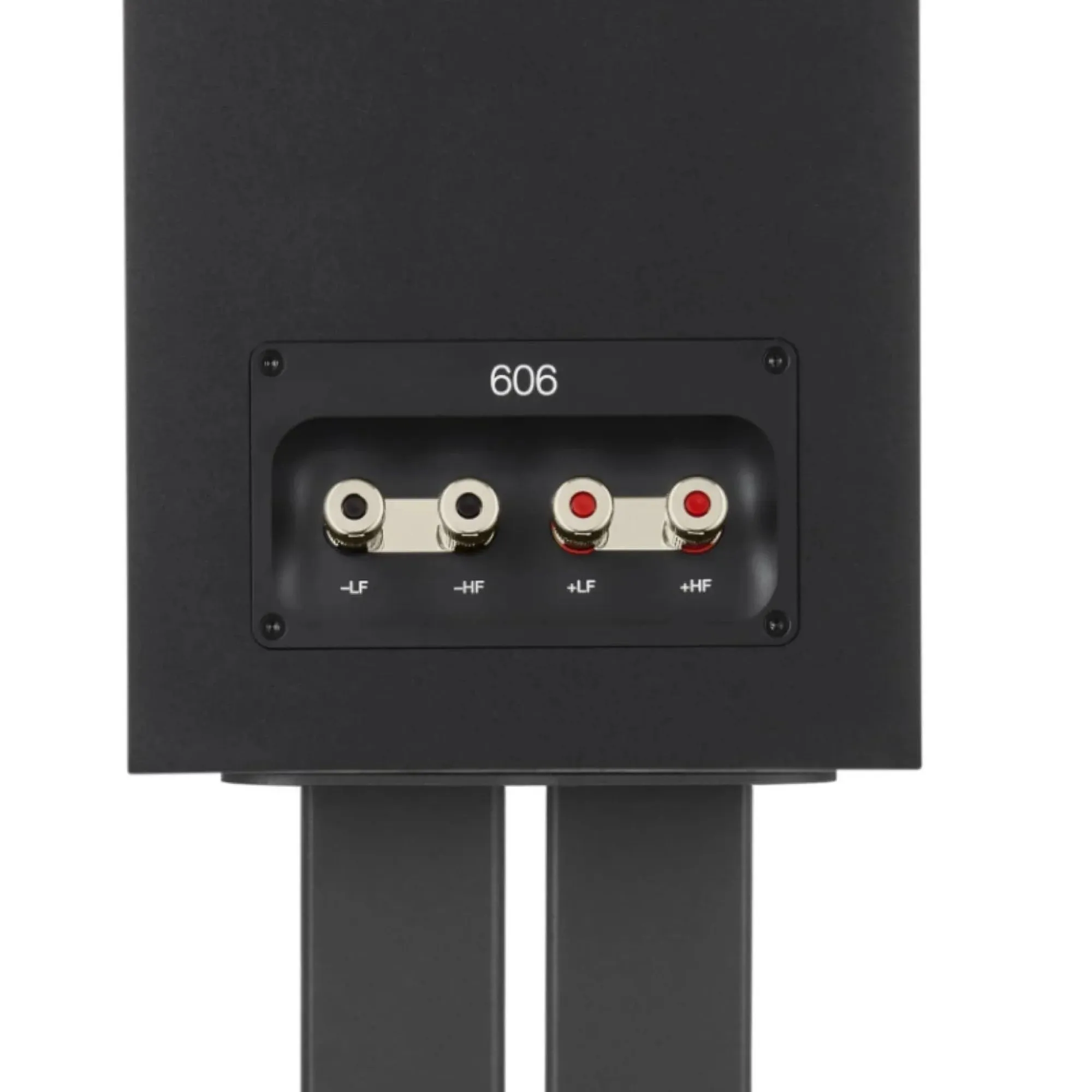 Uuden 606 S3:n kaiutinliittimet on johdettu hiljattain 700-sarjassamme esitellyistä kaiutinliittimistä, ja niissä on parannettu ulkoasu ja puhtaampi signaalitie vahvistimen ja kaiuttimien välillä.