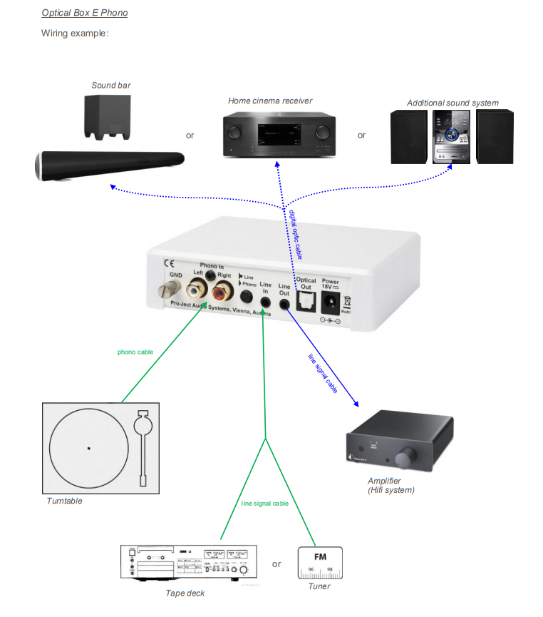 Of course it can also be used as an ordinary MM phono preamp with line output (3.5mm jack) that integrates in any HiFi system. The internal part of the housing is lined with metal, thereby eliminating RF interference and vibrations, so that an undisturbed listening experience is guaranteed. The Optical Box E Phono is the perfect partner for all modern Audiophiles who want to use their analogue signal sources with digital or analogue playback devices!