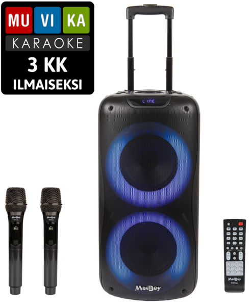 • Valikoimastamme voit valita kannettavan karaokesoittimen, mikserin, kaiuttimet ja mikrofonit.