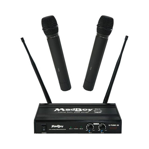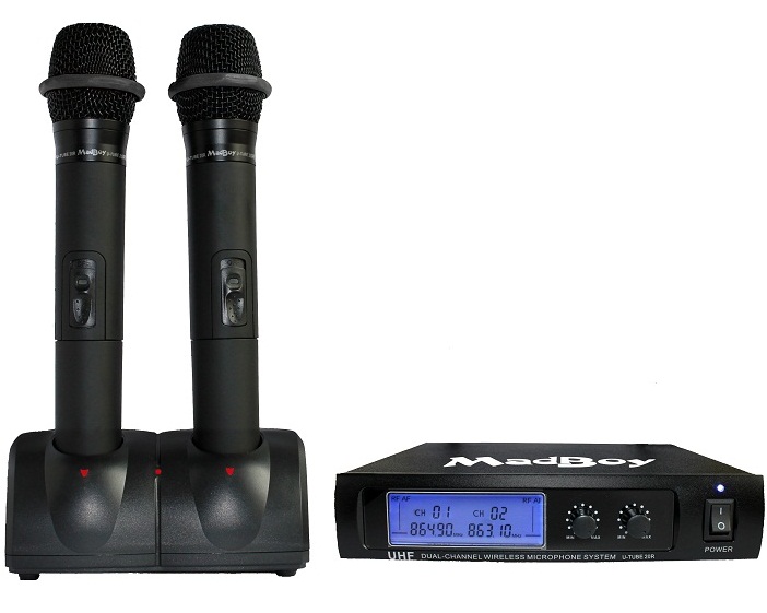 Akkukäyttöinen karaokelaite langattomilla mikrofoneilla