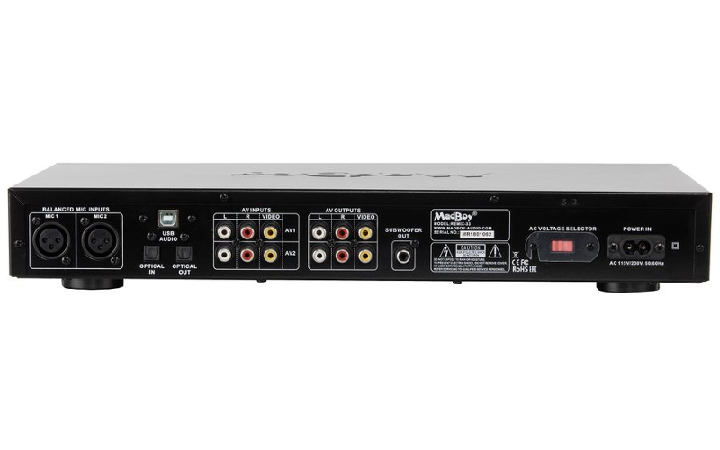 Mikrofoneille ja musiikille on omat kolmealueiset ekvalisaattorit, joilla säädät soundin juuri mieleiseksi. Mikrofoneille on lisäksi omat kaikusäätimet, jolla säädät studiotasoista DSP-kaikua kahdelle laulajalle erikseen. Mikrofonien liittimet on sijoitettu sekä laitteen etu- että takapuolelle.
