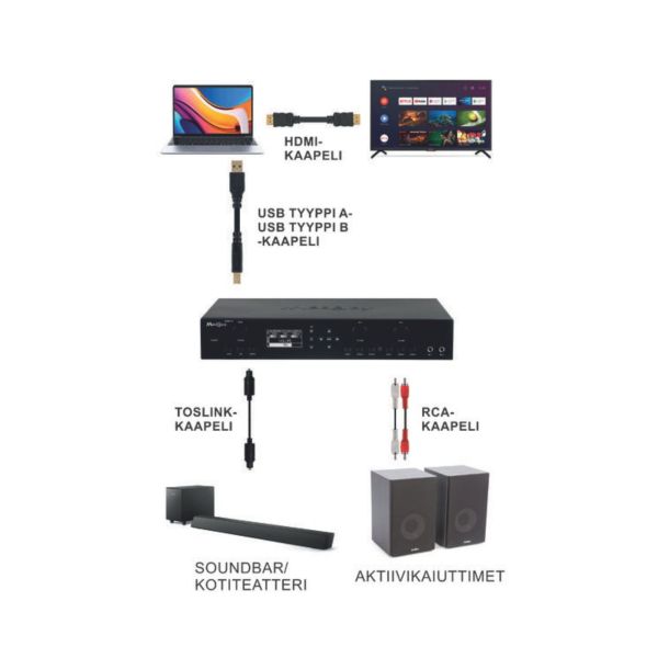 - 1 x USB-audioliitäntä (USB Type B / USB Class 2.0 yhteensopiva)
