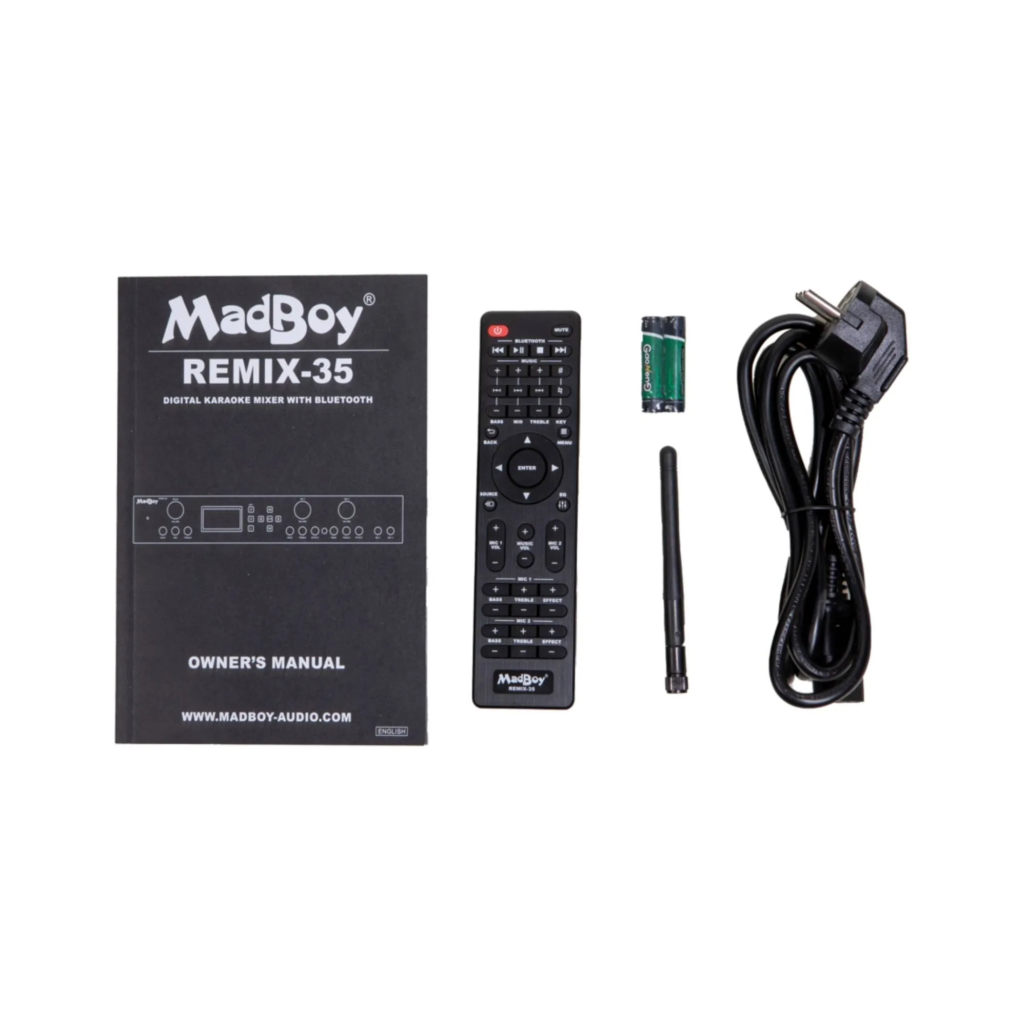 MadBoy REMIX-35 on helppokäyttöinen karaokemikseri, jossa on Bluetooth-yhteys, selkeä näyttö ja erilliset mikrofonisäädöt, joten saat laulun kuulostamaan hyvältä kotona, juhlissa ja kerhotiloissa.
