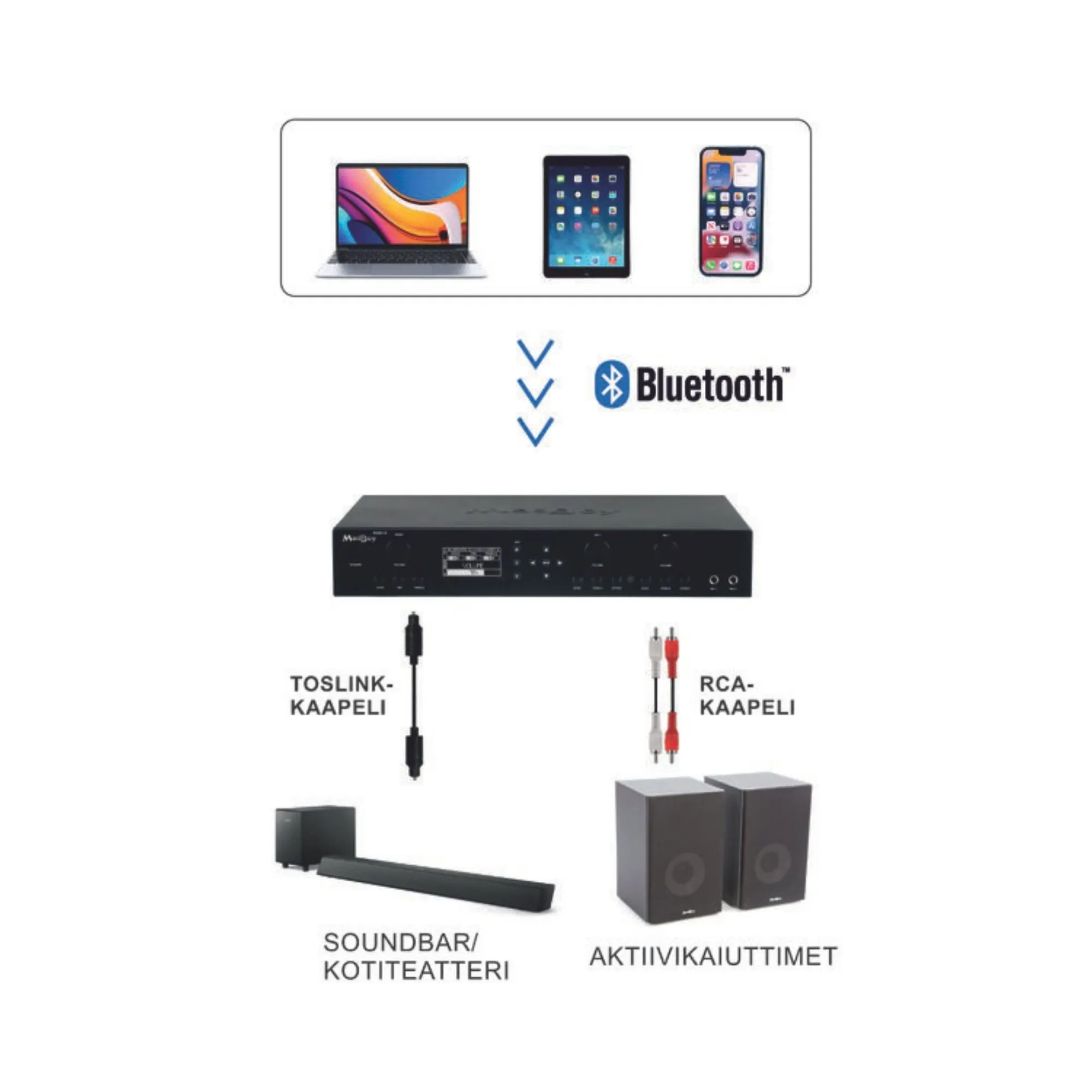 - Bluetooth 5.0-yhteys musiikin toistamiseen puhelimelta tai tabletilta