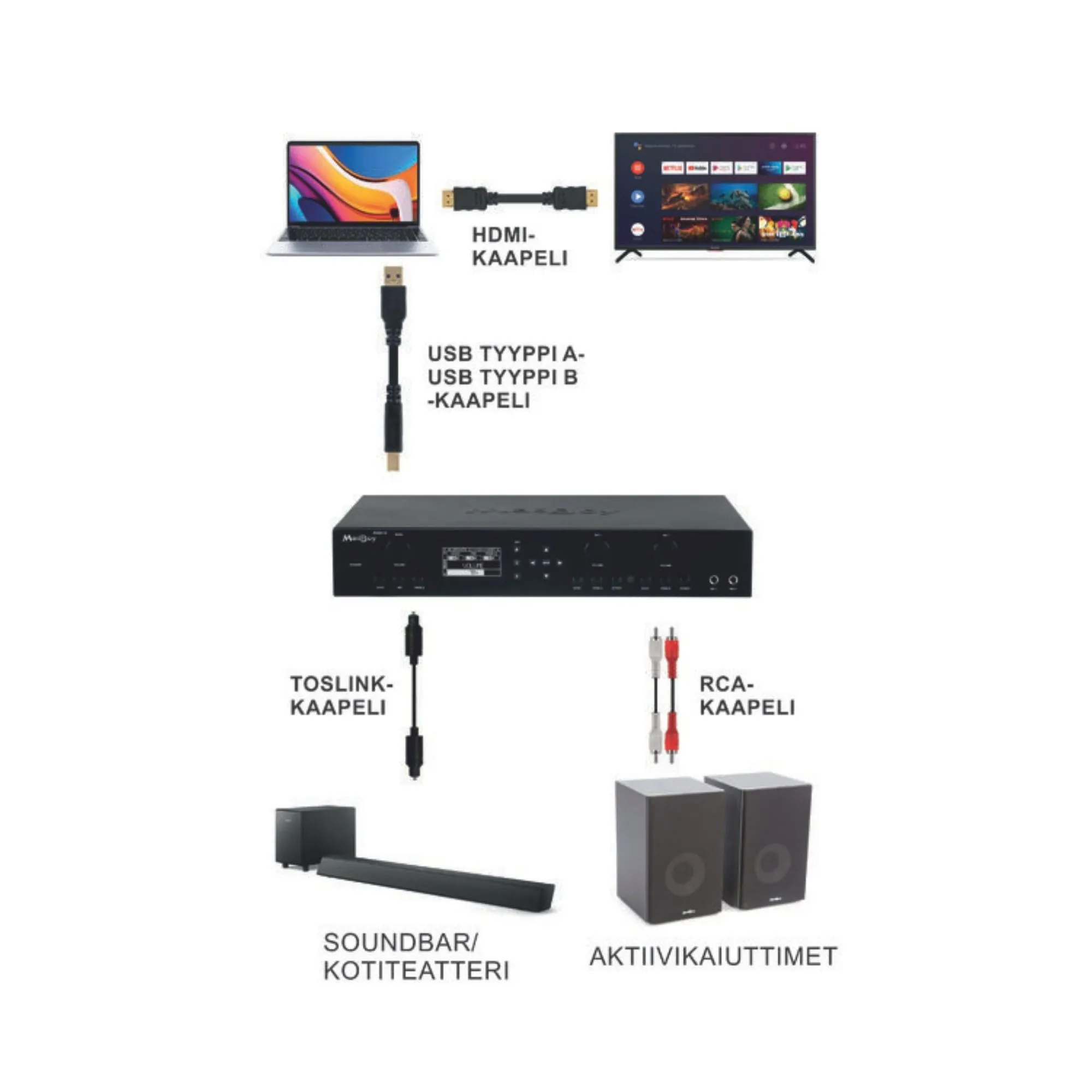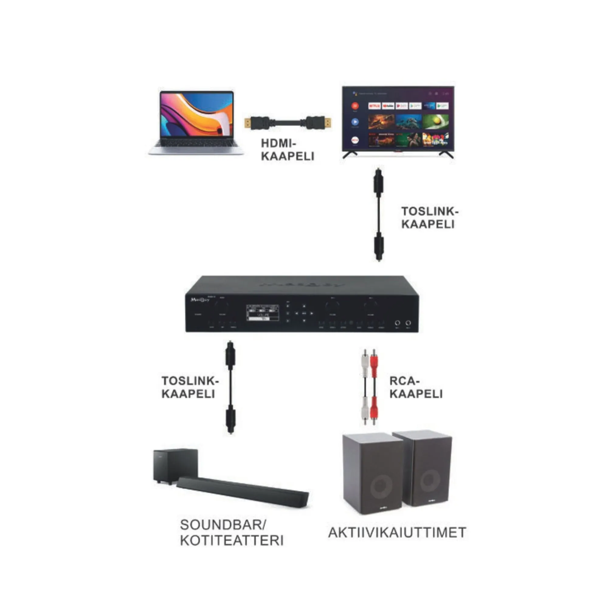 - 1 x Digitaalinen Optinen Toslink- sisääntulo (S/PDIF, PCM, 32-96 kHz)
