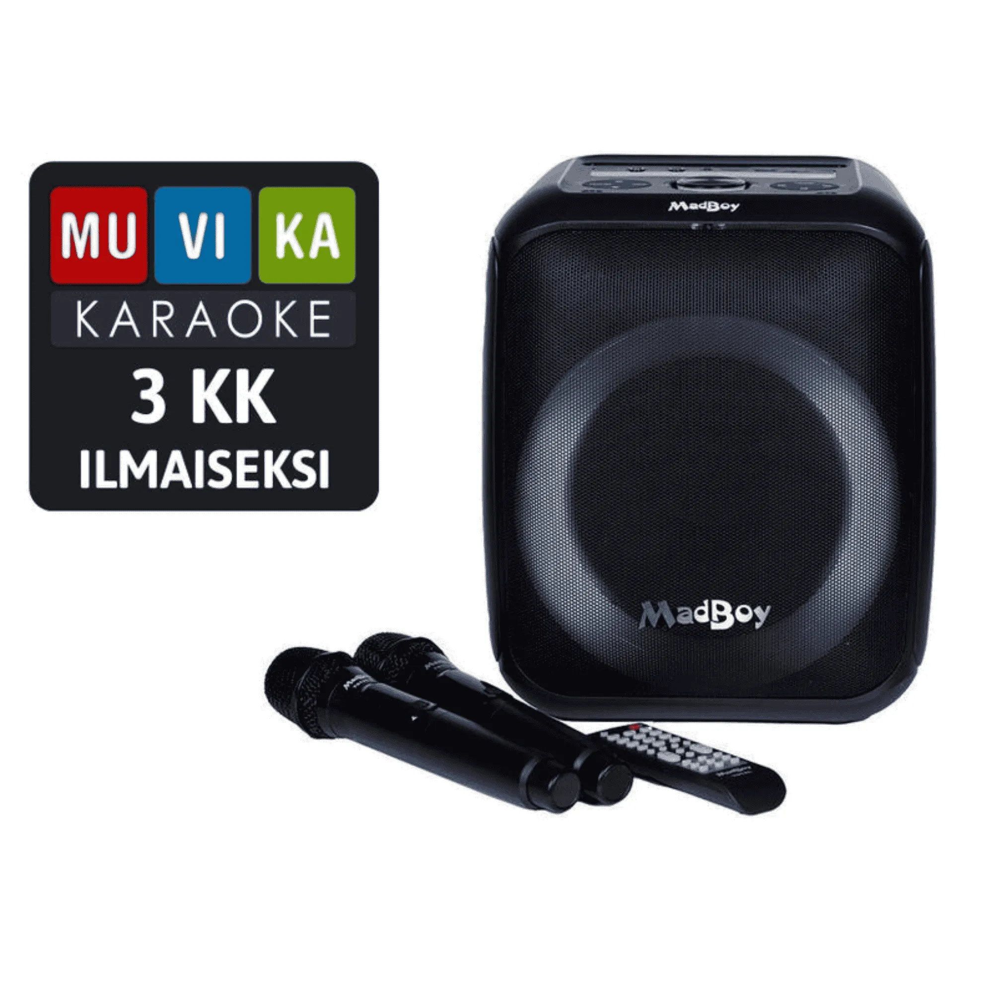 MadBoy TOTAL S on täydellinen ratkaisu sinulle, joka haluat laulaa missä ja milloin tahansa – helposti ja laadukkaasti. Tämä kompakti mutta tehokas karaokepaketti sisältää kaiken olennaisen: kaksi langatonta mikrofonia, aktiivikaiuttimet, mikserin sekä kattavat liitännät eri äänilähteille.