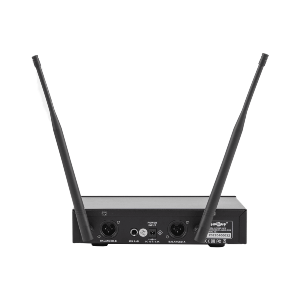 Täysmetallivastaanotin on valmistettu ammattimaisten vaatimusten mukaisesti. Äänenvoimakkuuden säädin ja viritin löytyvät kätevästi etupaneelista. Selkeä LCD-näyttö näyttää kanavanumeron, taajuuden, signaalin voimakkuuden ja mikrofonin äänenvoimakkuuden. Antenniliittimet, balansoidut XLR-lähdöt molemmille kanaville ja balansoimaton 6,3 mm:n mikrofonikanavia sekoittava lähtöliitin sijaitsevat vastaanottimen takapaneelissa.