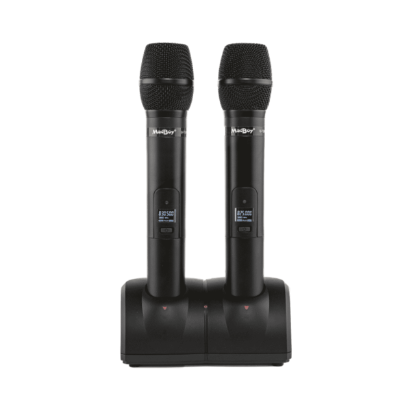 - 2 x kädessä pidettävä ladattava mikrofoni