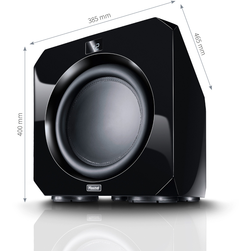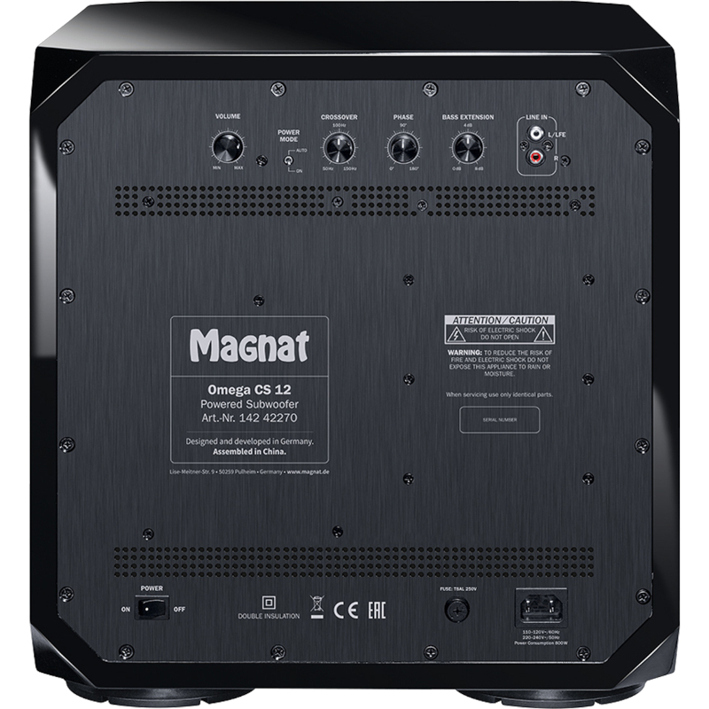 Magnat Omega CS 12 - Aktiivinen subwoofer, jossa on 12 tuumainen bassoelementti ja 525 wattia jatkuvaa tehoa tuottava vahvistin.