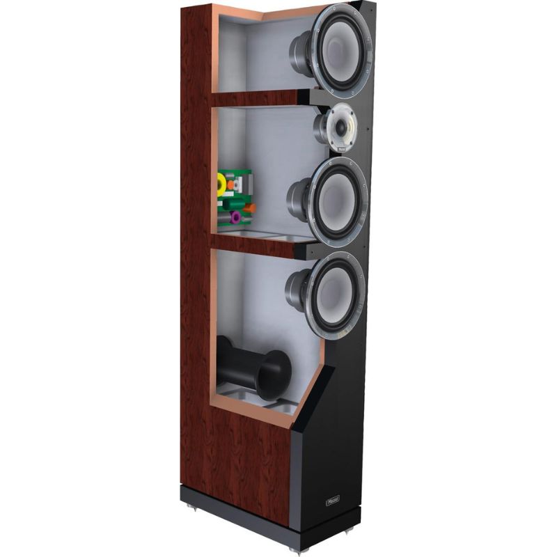 2 Bassoelementtiä ja erillinen midbasso halkaisijaltaan 170mm keraami-alumiinisella kartiolla ja vahvalla valurungolla, takaa tarkan ja täsmällisen äänikuvan, taajuustoiston siirtyessä saumattomasti tehokkaalle “F-Max” kangas-kalottidiskantille jossa on kaksiyhdisteinen kartio.