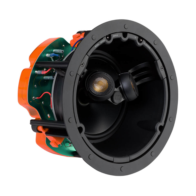 Monitor Audio C265-FX on kattoon upotettava asennuskaiutin kahdella surround valinnalla (Dipole / Bipole). Kaiuttimesta löytyy 6 1/2-tuumainen C-CAM bassoelementti ja Monitor Audion tunnettu C-CAM diskanttielementti. Hinta / kpl