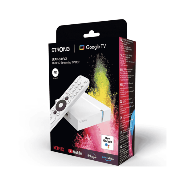 Strong LEAP S3 V2 on huippunykyaikainen 4K Ultra HD -suoratoistolaite, joka muuntaa minkä tahansa näytön täysiveriseksi viihdekeskukseksi Google TV -käyttöjärjestelmän avulla. Tämä kompakti mutta tehokas mediatoistin tukee uusimpia HDR-standardeja ja Dolby-ääniformaatteja, tarjoten veitsenterävän kuvanlaadun ja immersiivisen äänimaailman. Sisäänrakennettu Chromecast, monipuoliset liitännät ja Google Assistant -puheohjaus tekevät siitä täydellisen valinnan vaativalle käyttäjälle, joka arvostaa sujuvasti toimivaa ja laadukasta suoratoistoa.