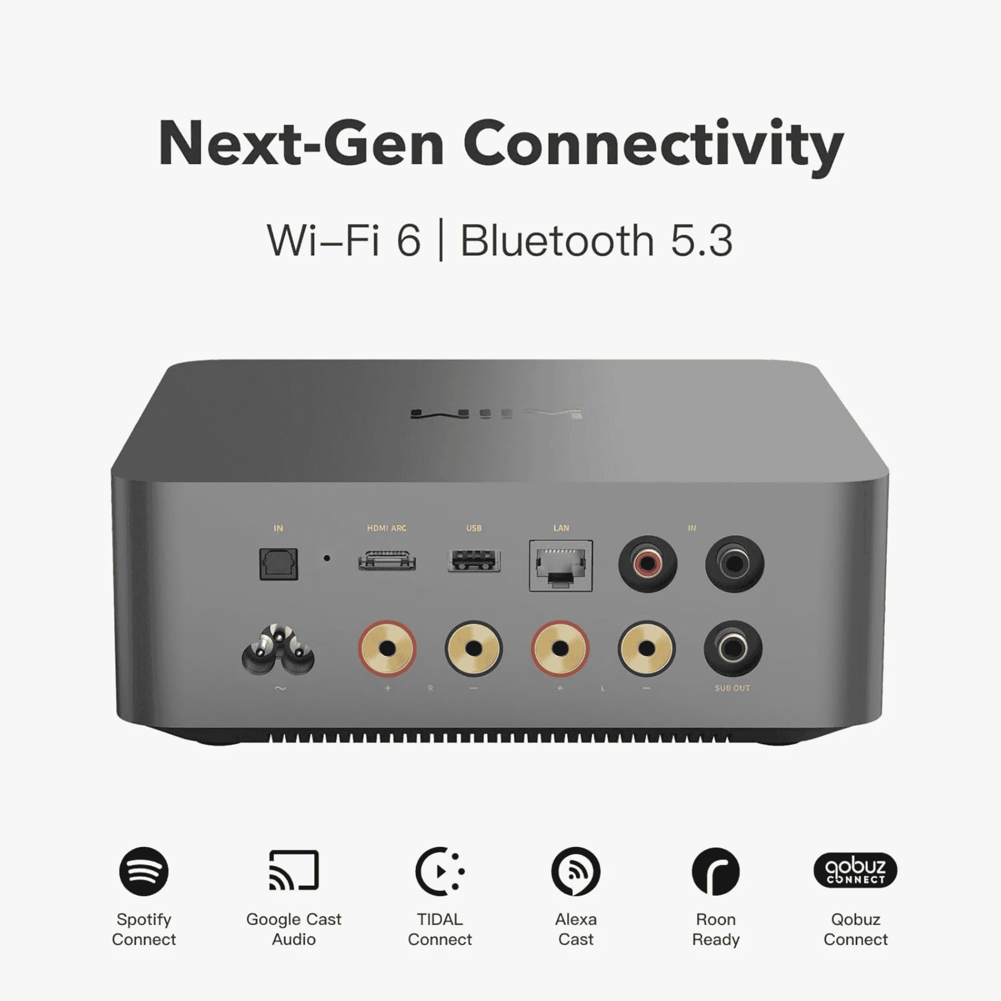Tuetut palvelut: Spotify Connect, TIDAL Connect, Chromecast, Roon Ready