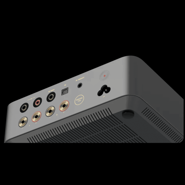 Laite toimii täysin passiivisesti jäähdytettynä – ilman tuulettimia. Sisäinen kuparilämpöputki, suuri alumiininen jäähdytyselementti ja PID-lämmönsäätely takaavat hiljaisen ja viileän toiminnan jopa pitkillä kuuntelusessioilla. Etupaneelista löytyy fyysinen äänenvoimakkuussäädin ja valitsin, mikä lisää käyttömukavuutta.